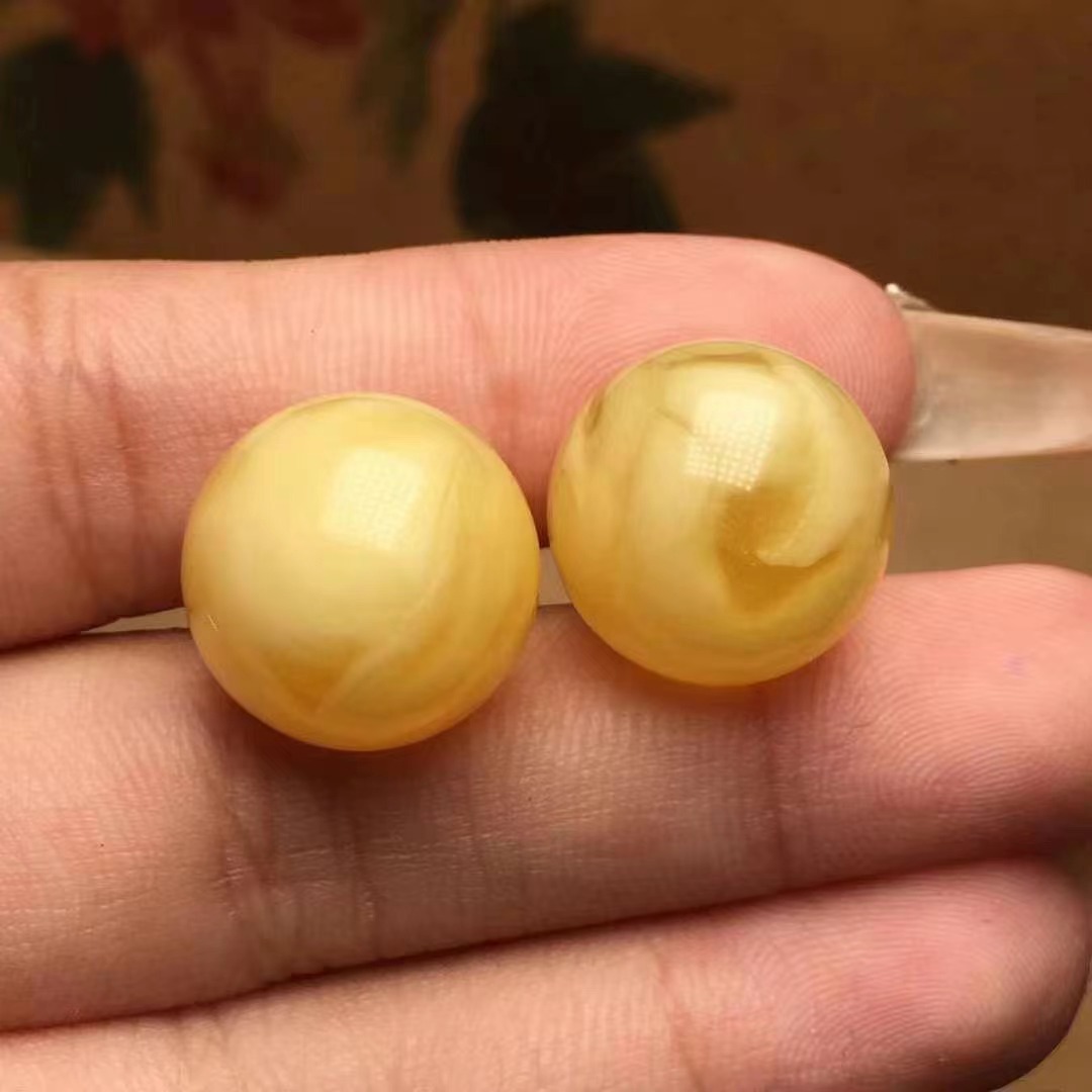 Natural Beeswax Round Bead Single Bead Pendant Gold White Chicken Fat Yellow Waxy Rich Texture Clear Necklace Necklace Accessories