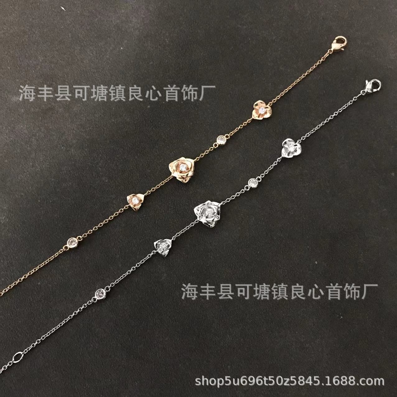 New V gold small Camellia bracelet Diamond small flower bracelet niche design clear fashion commuter all-match women's