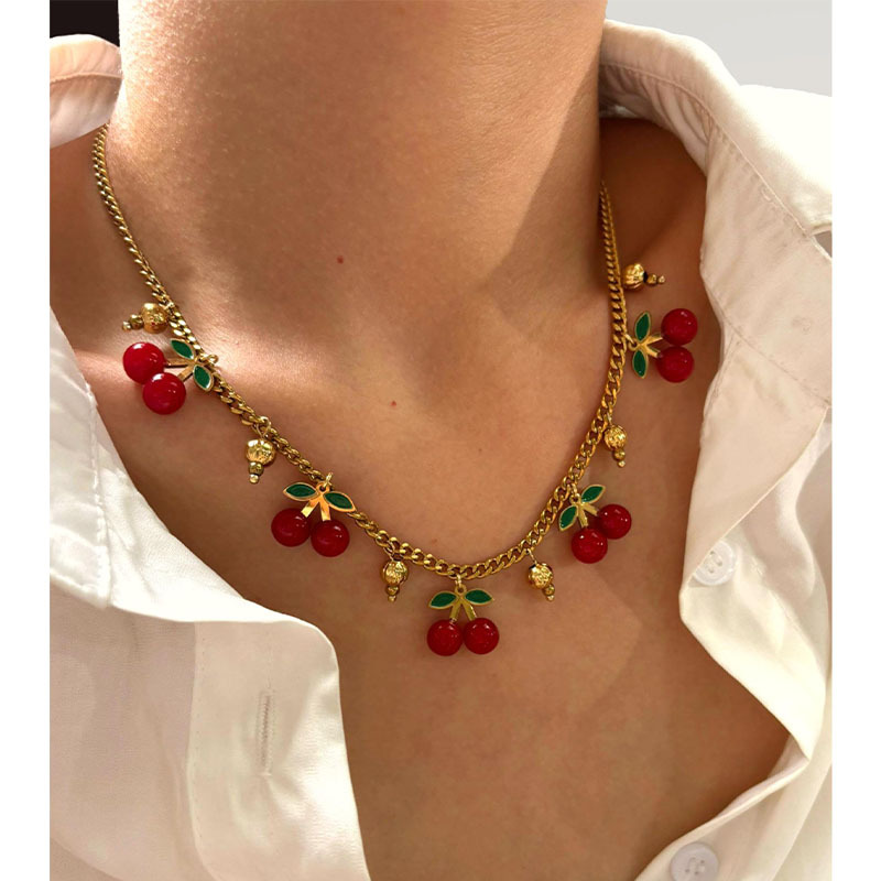 European and American Cross-Border Sweet Stainless Steel Red Acrylic Cherry Multi-Pendant Necklace Fashionable Clear Women's Clavicle Chain
