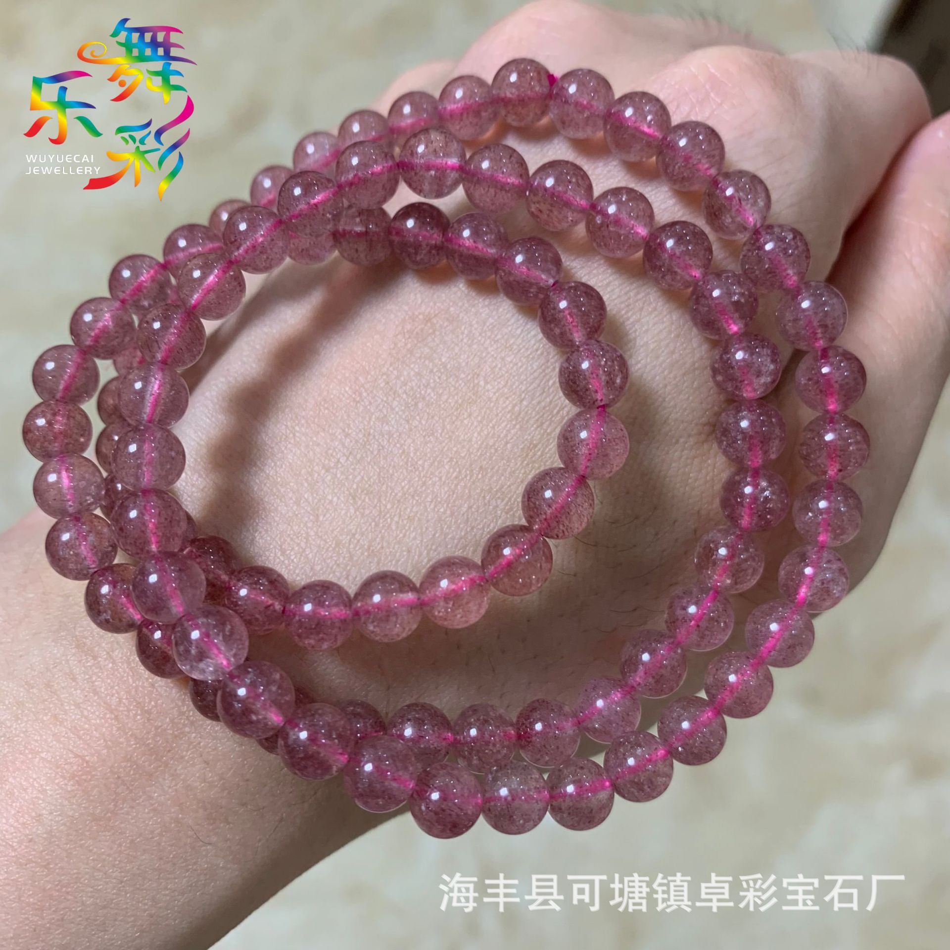 Natural Strawberry Crystal Three Circle Bracelet Strawberry Crystal Buddha Beads Bracelet Color Red Strawberry Seeds Clear and Visible Wholesale
