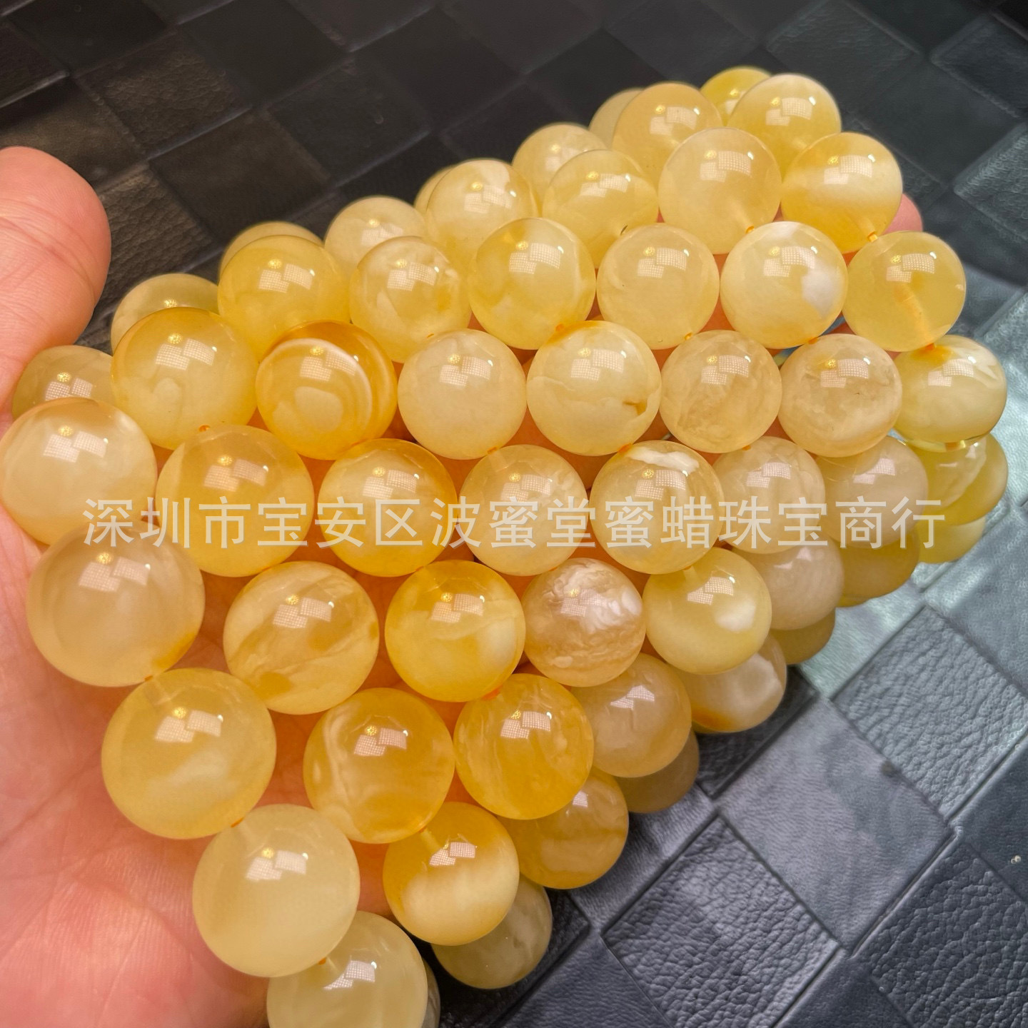 Natural amber beeswax white flower wax round beads with beads wax full rich lines clear and beautiful m
