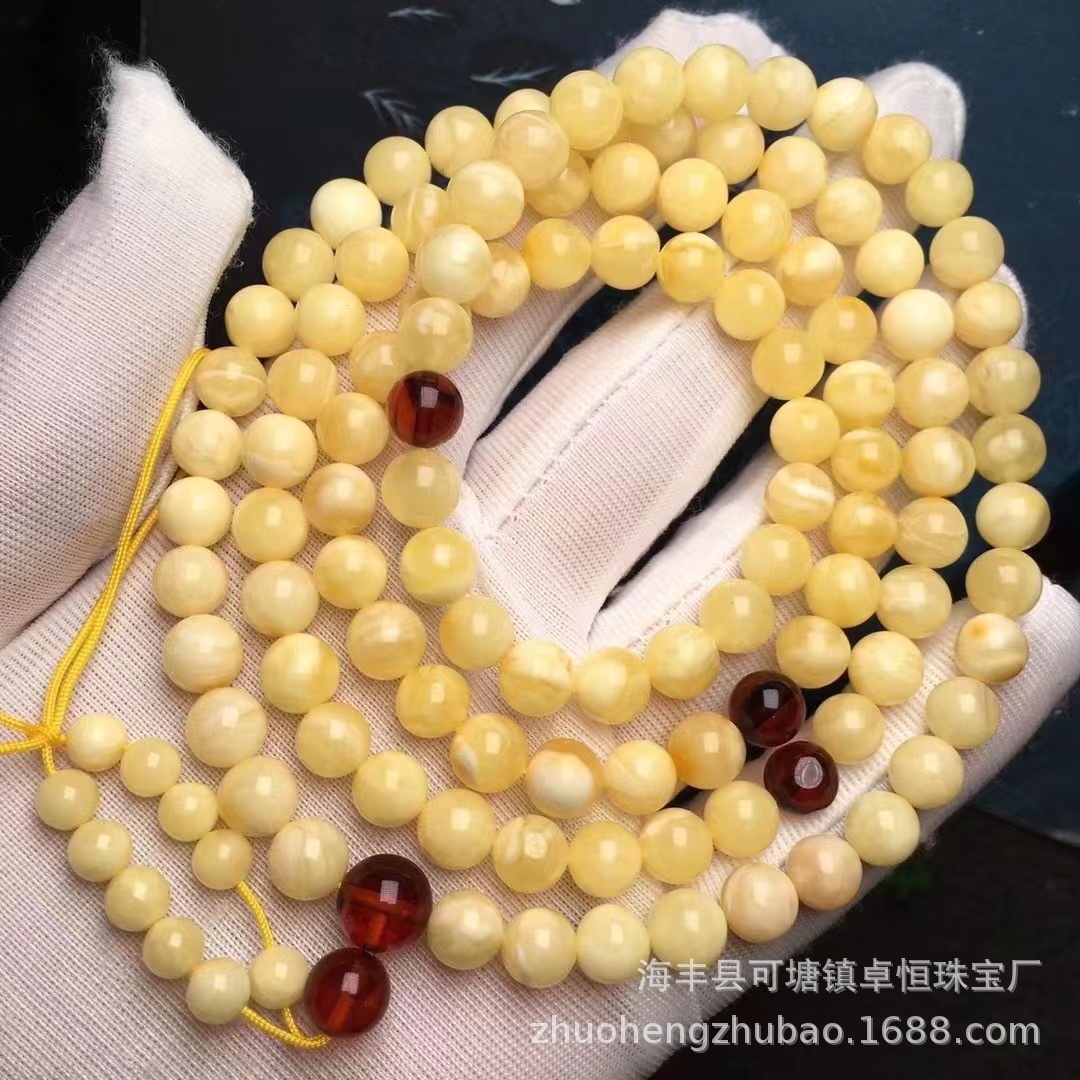 Raw ore amber beeswax Russian beeswax white flower wax 108 beads DIY round bead accessories full wax lines clear
