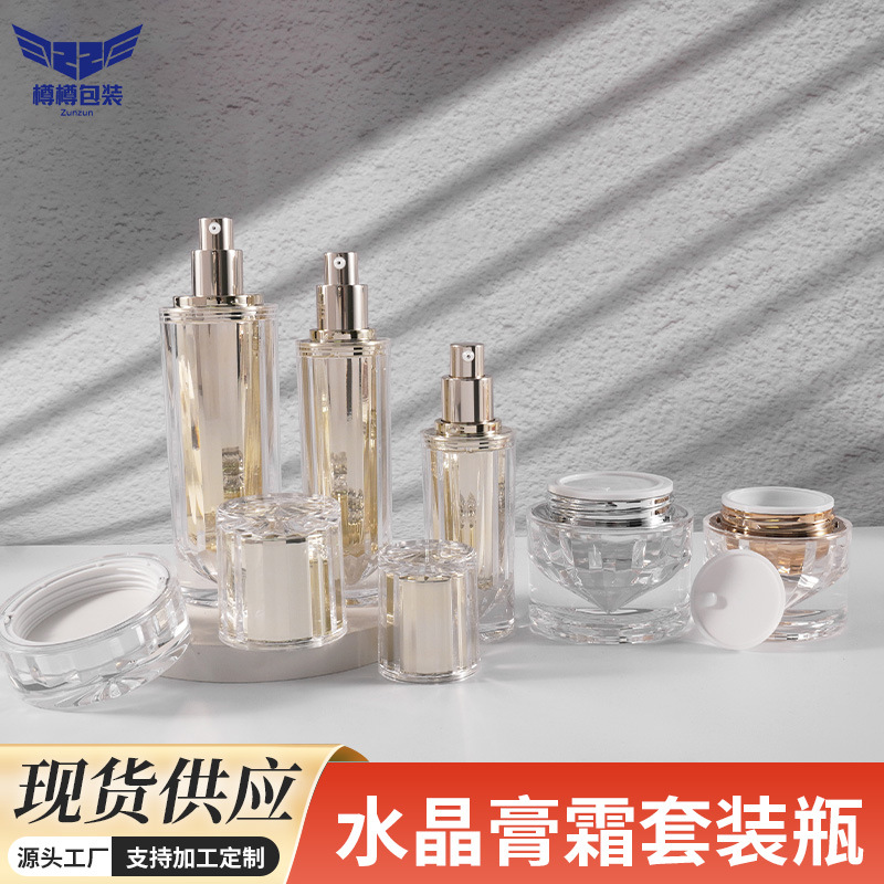 High-End Double-Layer Glass Set Bottle Skin Care Product Packaging Lotion Vacuum Bottle Protective Crystal Diamond Cream Bottle Lady Cream Bottle