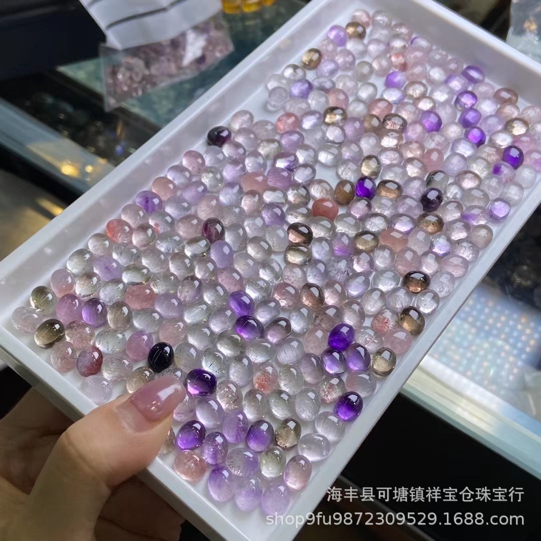 Natural Super Seven Oval bare stone hair Mica clear natural Super Seven Crystal hand-inlaid ring Surface accessories