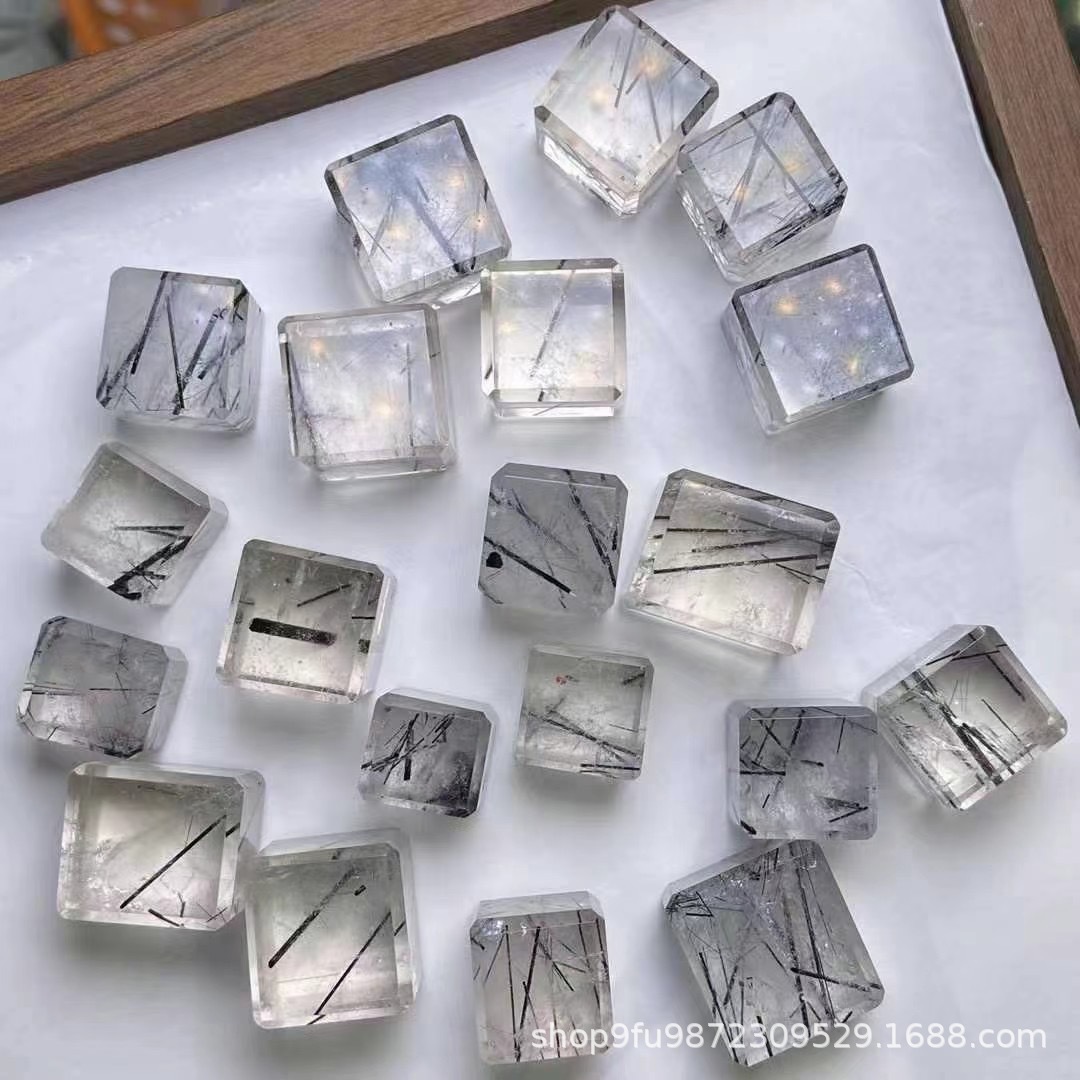 Natural Black Hair Crystal Sugar Naked Stone Hair Clear Crystal Transparent Handmade DIY Accessories Black Hair Crystal Square Wholesale