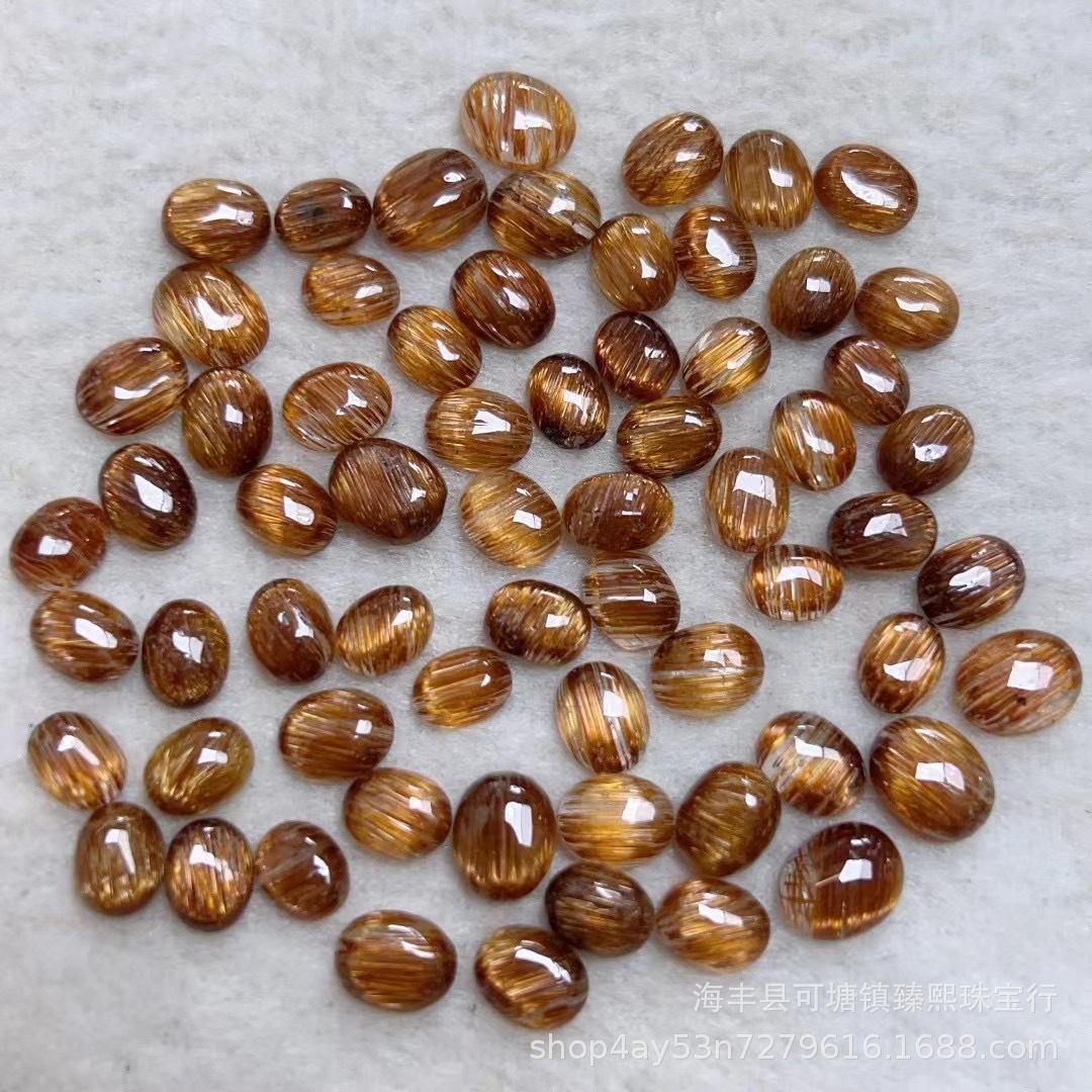 Natural copper hair crystal oval denier-shaped bare stone crystal transparent hair clear DIY natural copper hair Crystal wholesale