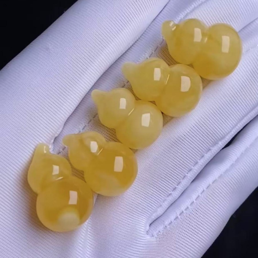 Natural Amber Beeswax Small Boutique Gourd Fulu Pendant, Rich Wax Texture, Clear and Beautiful Shape, Full m
