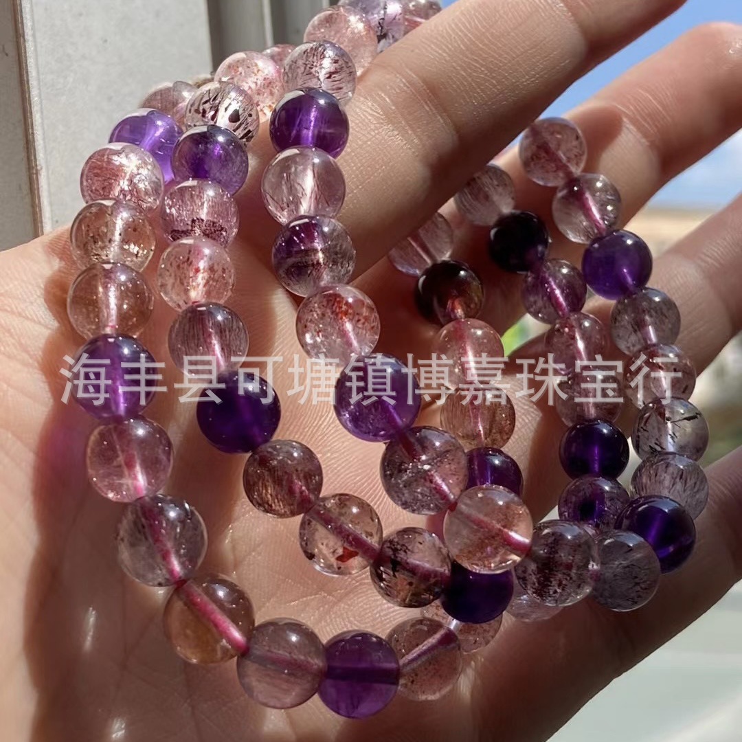 Natural Super Seven Crystal Bracelet Hair Clear Round Bead Single Circle Factory Wholesale Lucky Energy Crystal Super Seven Bracelet