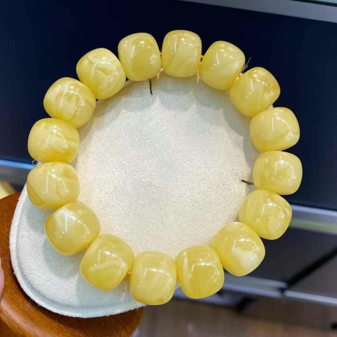 Natural Beeswax Old Honey Flower Wax Old-Style Bracelet with Rich Wax Texture and Clear Patterns, Wholesale Amber Bracelet Supply
