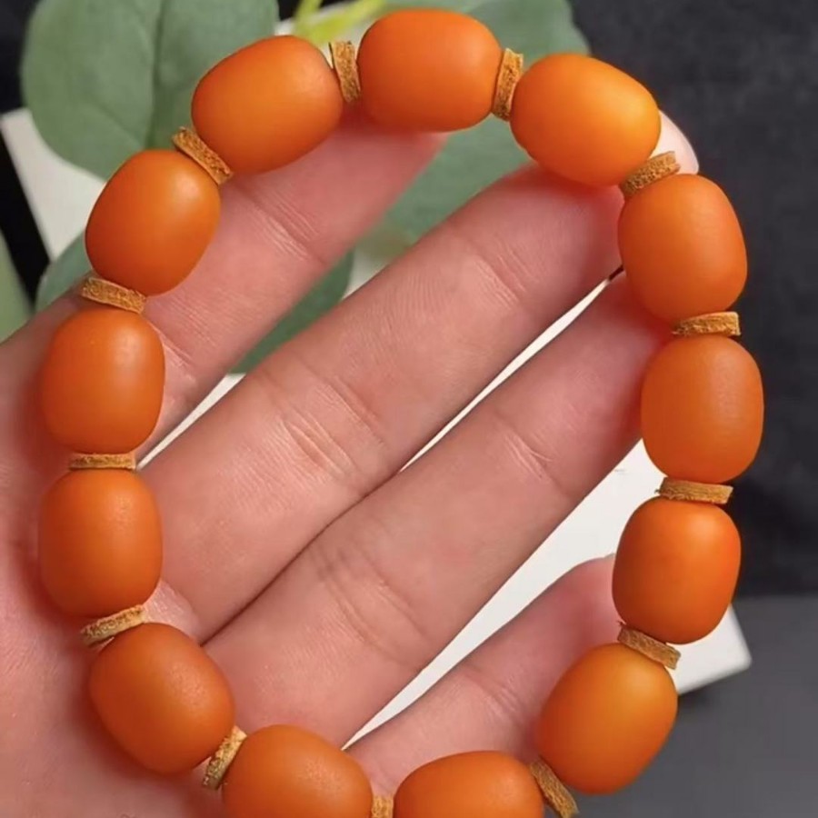 Natural Beeswax Old Wax Orange Peel Jujube Bead Bracelet, Thick Wax Texture, Clear Texture, Full of Antique Charm m