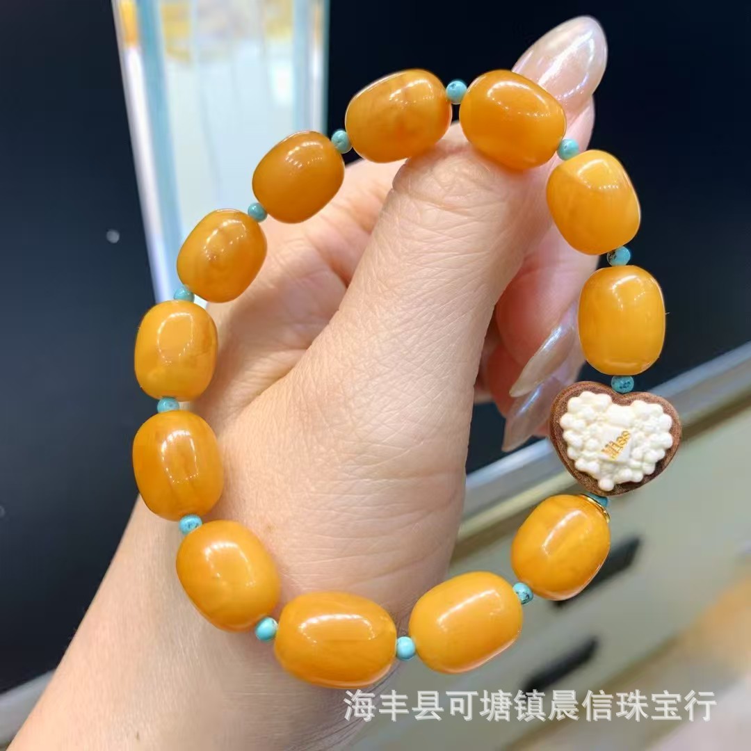 Natural Amber Beeswax Old Wax Small Jujube Beads Bracelet with Full Wax Texture and Clear Texture Paired with Turquoise Manufacturer Wholesale