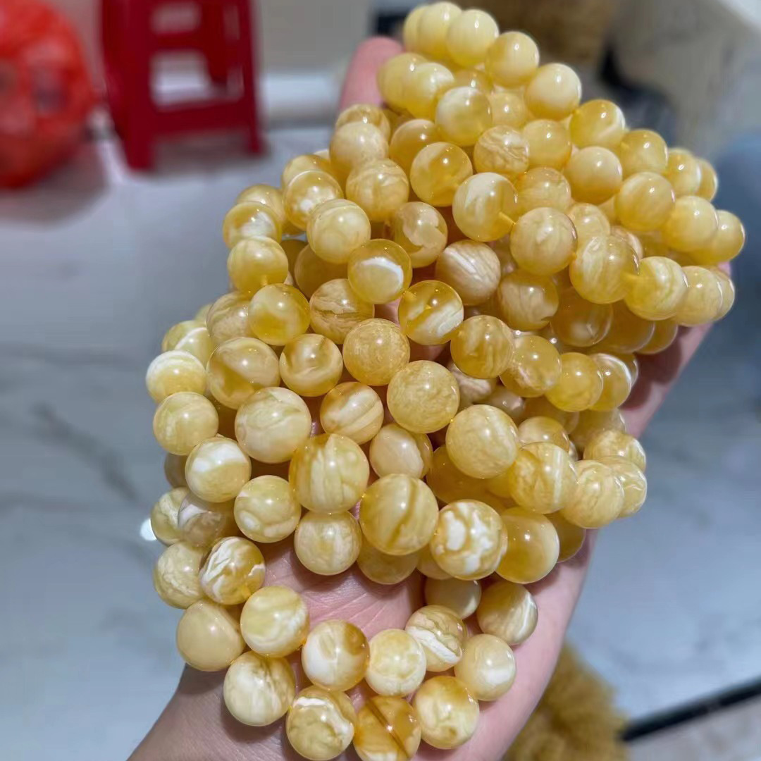 Natural Amber Beeswax Bracelet, Full Wax Bracelet, Three-Free Products, White Honey Pattern Clear and Clear, High Quality m