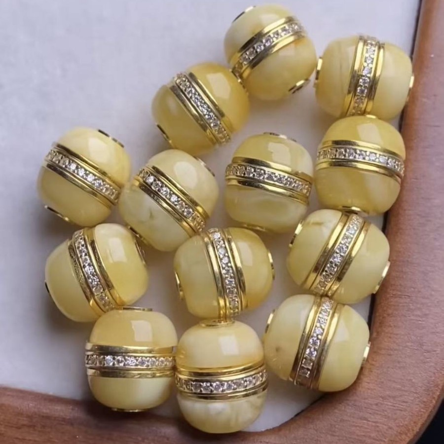 Natural amber beeswax accessories Russian straight cut old loose beads accessories full of honey clear and beautiful W