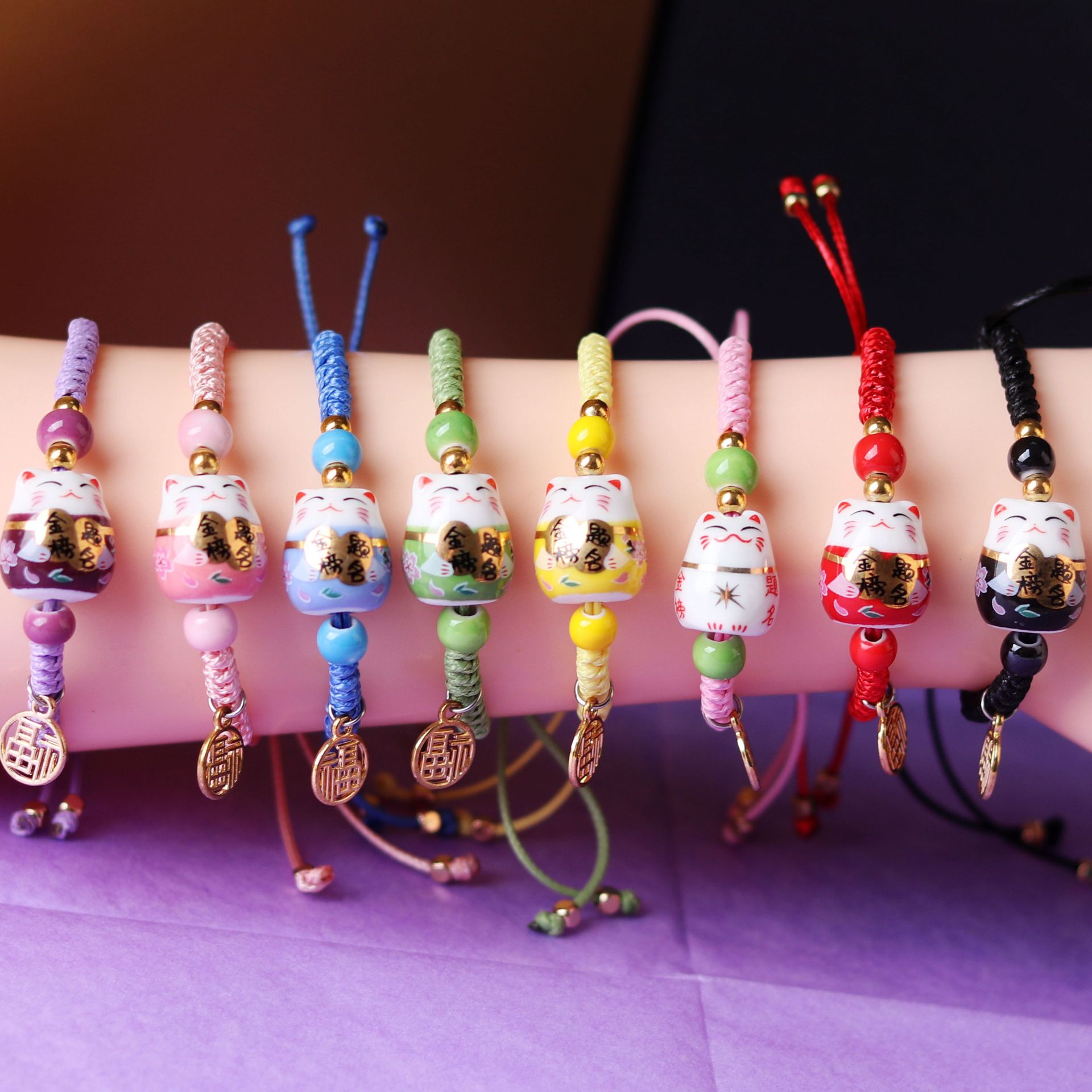 Simple Cute Ceramic Gold-painted Kitten Bracelet for Women Small Clear Student Handmade Woven Lucky Cat Best Friend