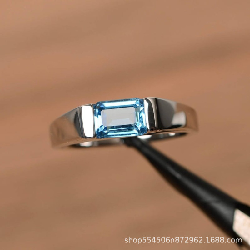Chengge Niche Design Fashion Clear Inlaid Light Blue Rectangular Zircon Ring