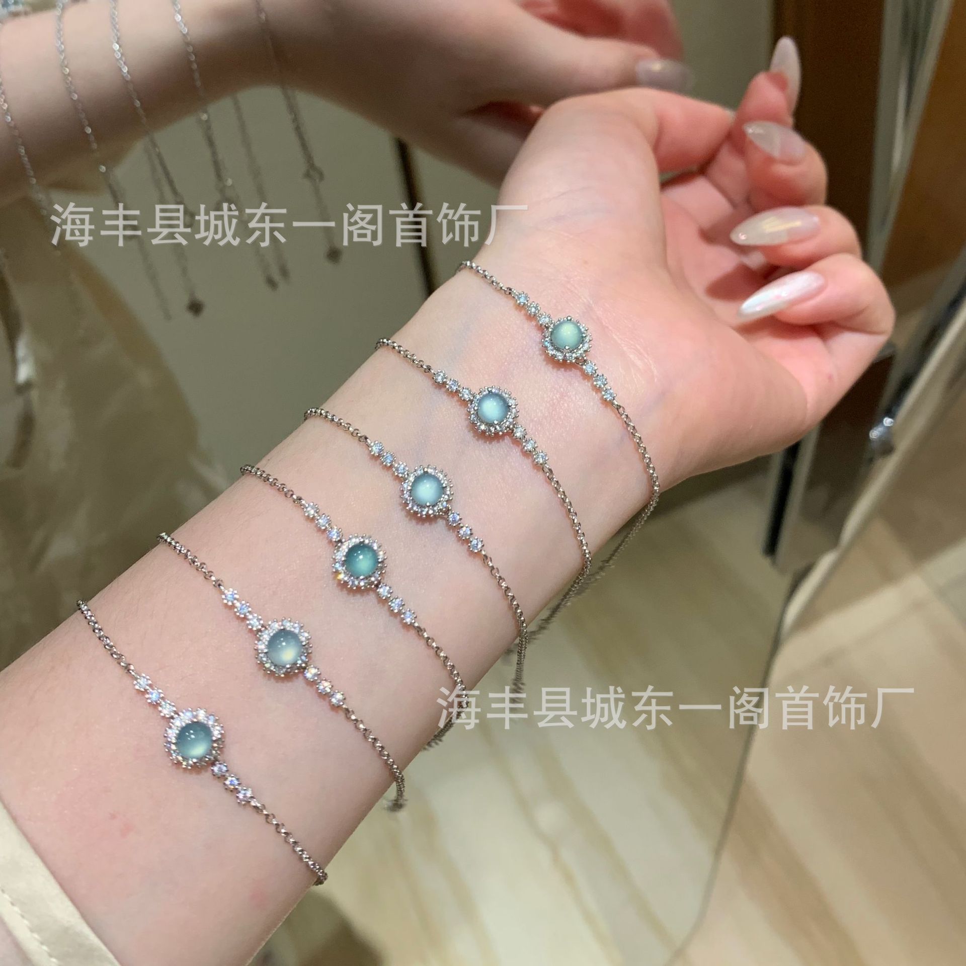 Factory wholesale small red department natural dangerous material blue water jade bracelet s925 silver inlay small clear Joker design