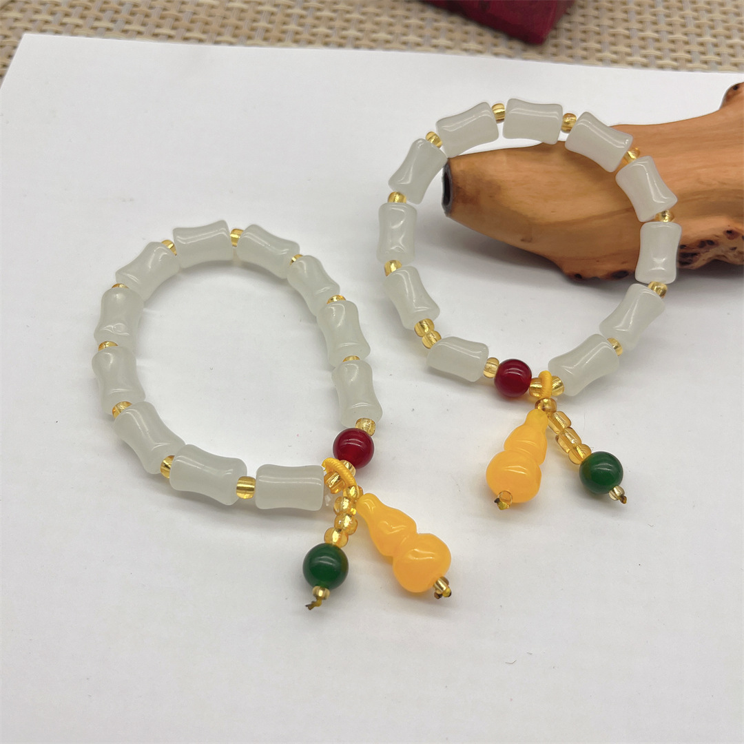 New colorful bamboo high-rise bracelet imitation white jade bracelet small clear all-match gourd pendant bracelet live delivery