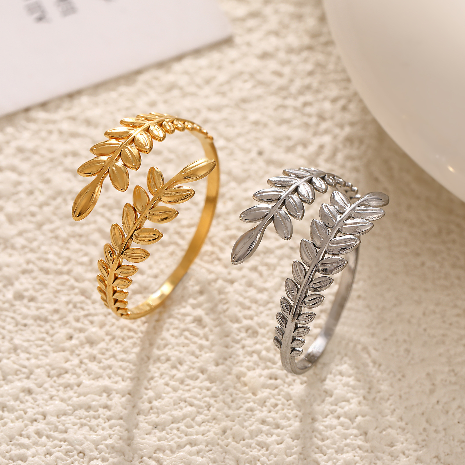 Factory Direct Sale Leaf Open Titanium Steel Ring for Women, Minimalist Style, Adjustable Index Finger, Small Clear Personality Ring