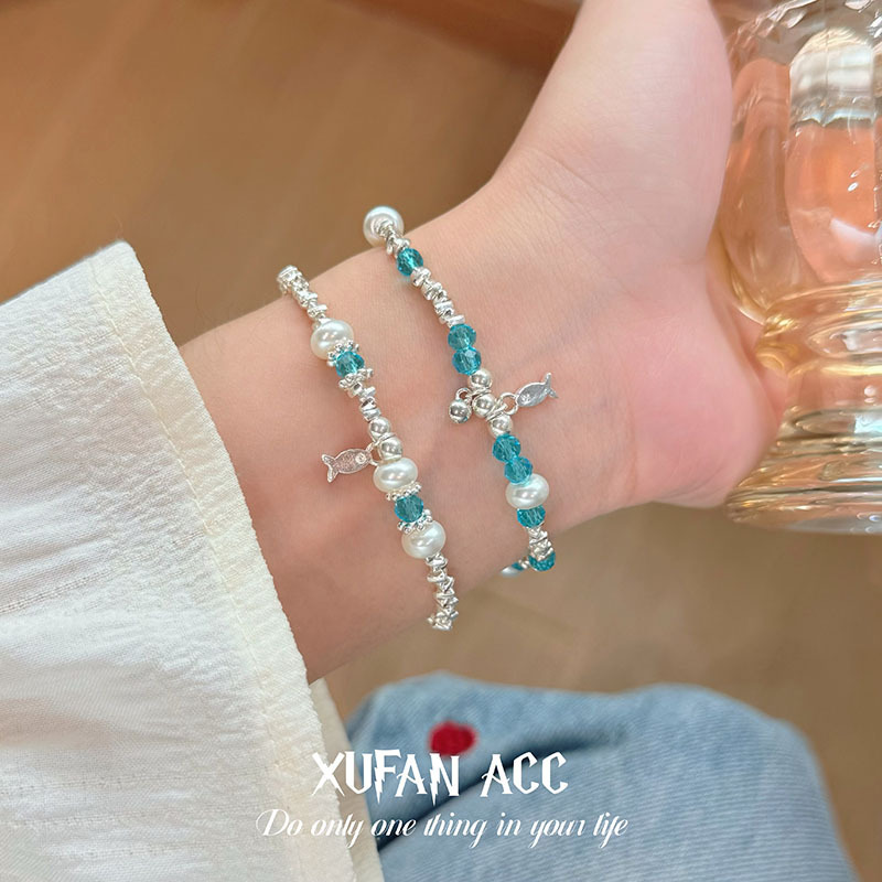 2025 New Summer Blue Beaded Broken Silver Fish Bracelet Niche Design Casual Personality Temperament Easiest for Match