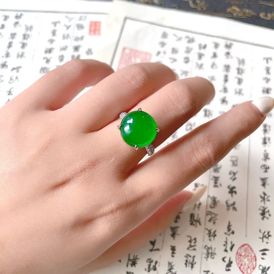 Live high ice green chalcedony ring plating 925 inlaid temperament egg surface female ring green agate ring manufacturers wholesale