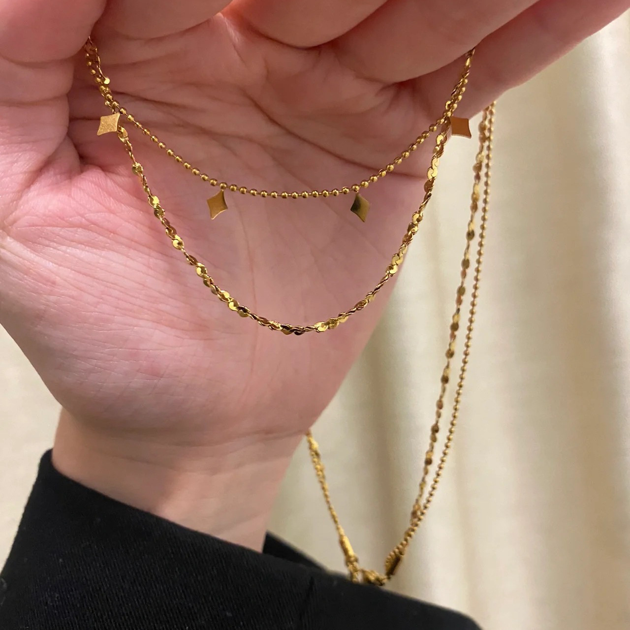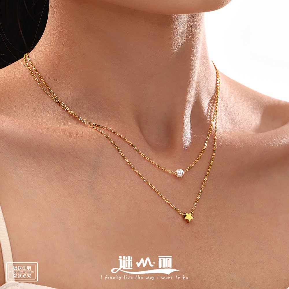Mysterious Star and Shell Bead Design Multi-Layer Necklace European and American Style Hot-Selling Work Clothing Stacking Titanium Steel 18K Real Gold Jewelry