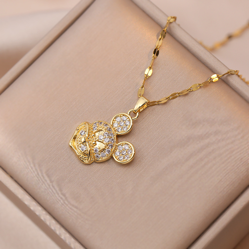 Necklace for Women Korean and Japanese Style Fashion Simple Zircon Mouse Necklace Trendy Clear Temperament Titanium Steel Clavicle Chain Wholesale