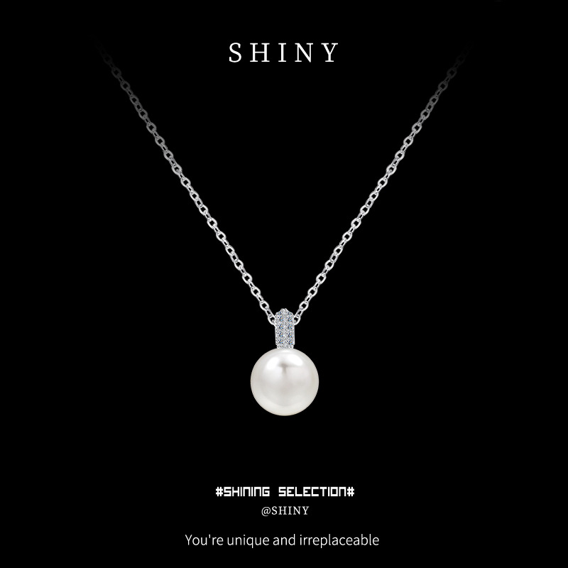 S925 All-Over Sterling Silver Pearl Necklace for Women, Versatile High-End Gift for Women, Simple and Versatile, Small, Clear and High-End