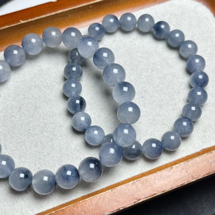 Natural Blue Rabbit Hair Round Bead Single Circle Bracelet Hair Clear Blue Gray Rabbit Hair Handmade DIY Accessories Manufacturer Wholesale