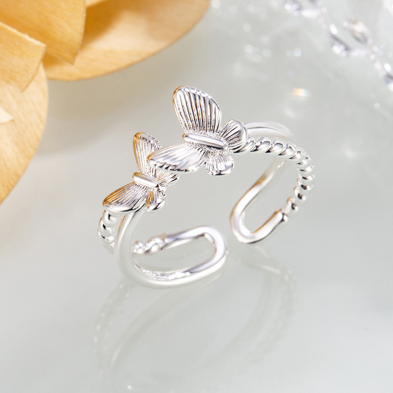 Sweet Two Butterflies Ring Simple Fashion Temperament Personalized Niche Design Small Clear All-match High-end Jewelry