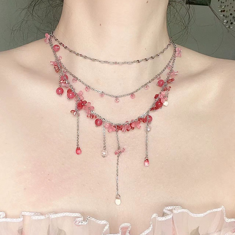Super Fairy and Exquisite Atmosphere White and Pink Beaded Stacking Necklace Women's Fashionable Elegant Necklace Niche Sweet Clavicle Chain