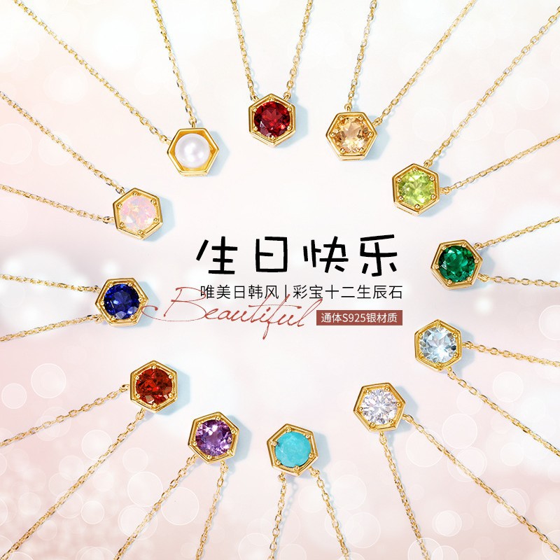 Cross-border hot selling fashion simple twelve birthstone necklace S925 sterling silver gold-plated necklace niche jewelry wholesale