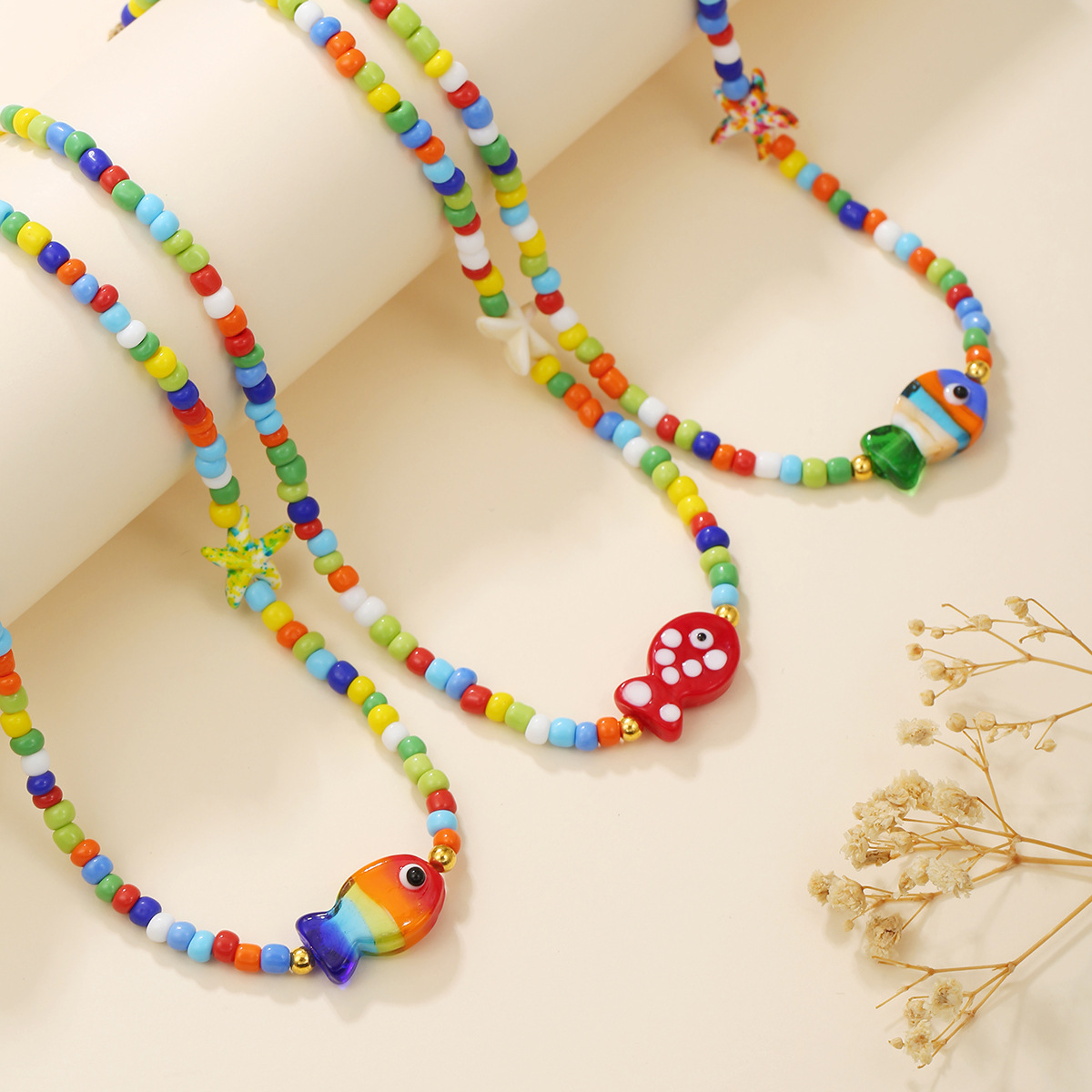 Colorful Glazed Fish Necklace, Hand-Beaded 4mm Rice Bead Clavicle Chain, Women's Fashion Jewelry, Chinese Valentine's Day Gift