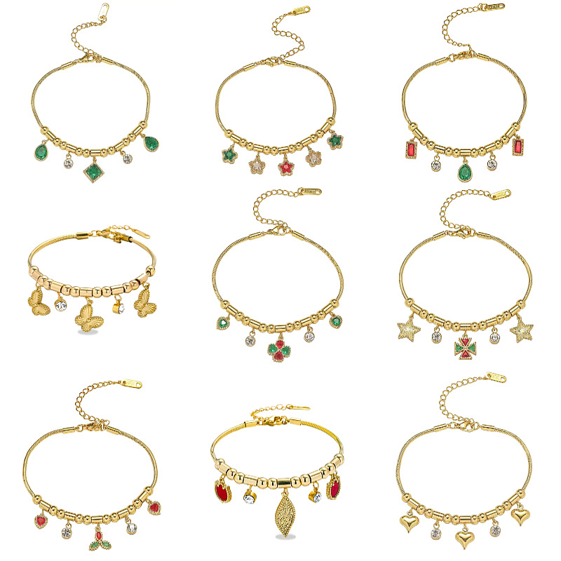 Bracelet for Women European and American Heart Niche Elegant Cross-Border Simple Emerald Water Drop Zircon Diamond Beaded Titanium Steel Jewelry