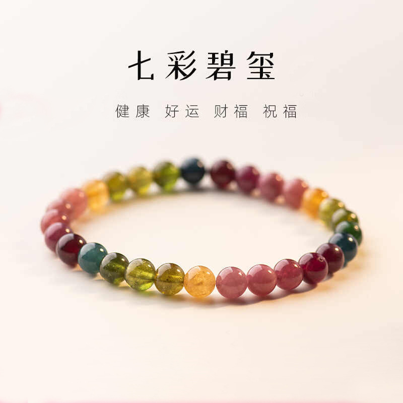Natural Color Tourmaline Bracelet Simple Niche Design Men's and Women's Bracelet Color Elegant All-match National Style Single Circle Accessories