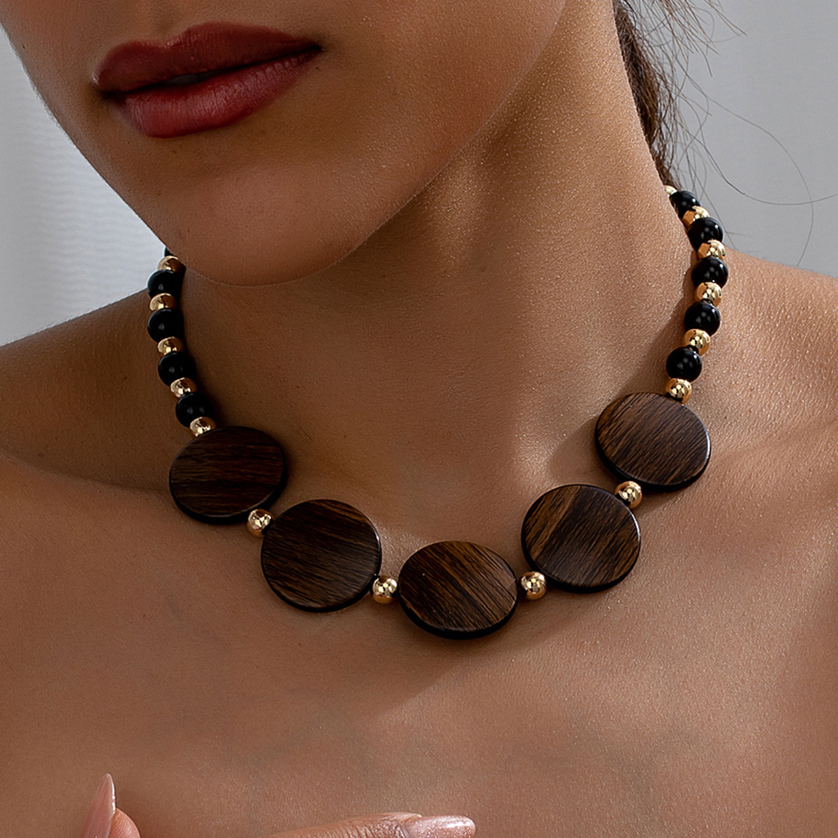 Cross-border fashion new ins retro matte temperament personalized street round wooden beaded necklace daily commute
