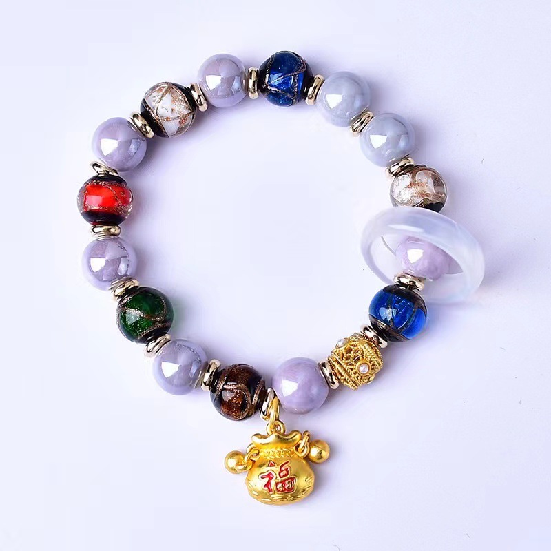 Scenic spot same style little red book luminous fragrant gray colored glaze bracelet colorful multi-treasure golden beast men's and women's fashion bracelet