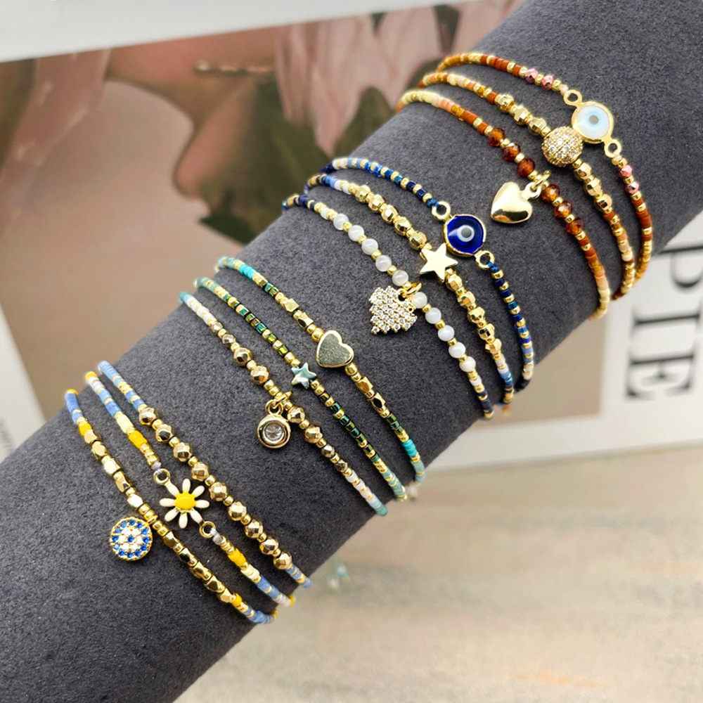 Multi-Layered Miyuki Rice Beads Ultra-Fine Beaded Bracelet Ins Style Girls Fashion Micro-Encrusted Diamond Eye Bracelet