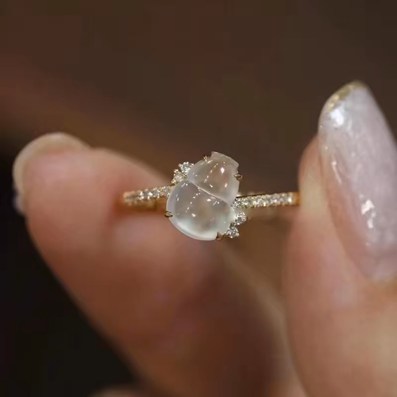 High-Transparent Glass Chalcedony Gourd Ring for Women Inlaid with High Appearance, Exquisite, Elegant, Auspicious and Safe