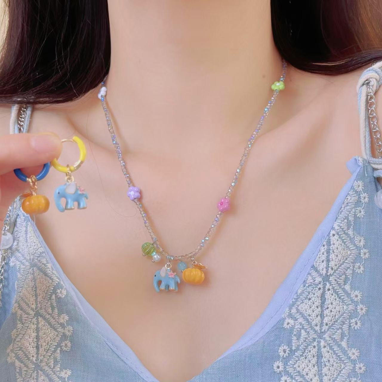 Amazon 4MM color crystal natural stone beaded necklace female aquamarine tourmaline necklace Yiwu jewelry wholesale