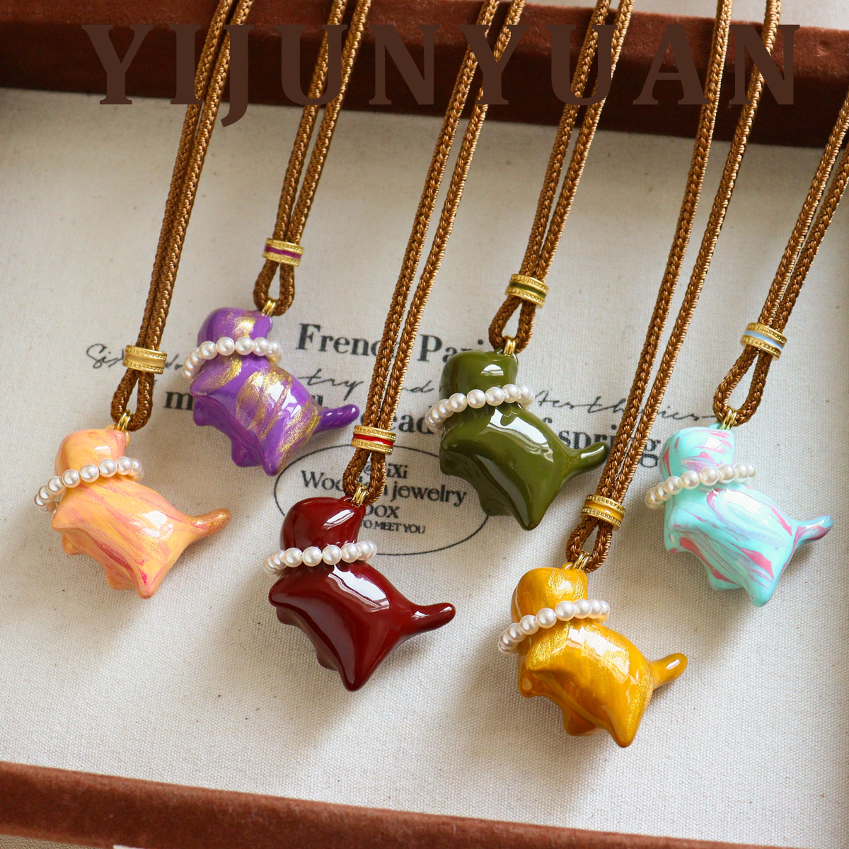 Original Fashionable Versatile Colorful Enamel Pearl Cat Sweater Chain Jewelry Exquisite Light Luxury Elegant High-End Necklace