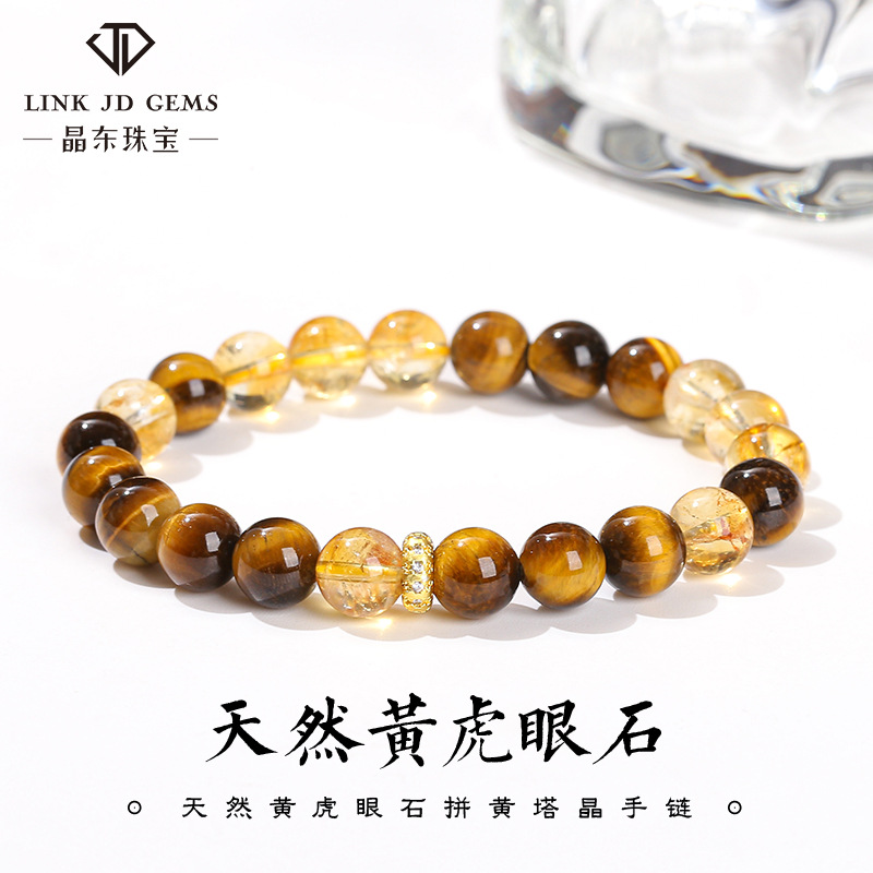 Jingdong Jewelry 5A Natural Yellow Tiger Eye Stone with Yellow Tower Crystal Bracelet European and American Single Circle Versatile Jewelry