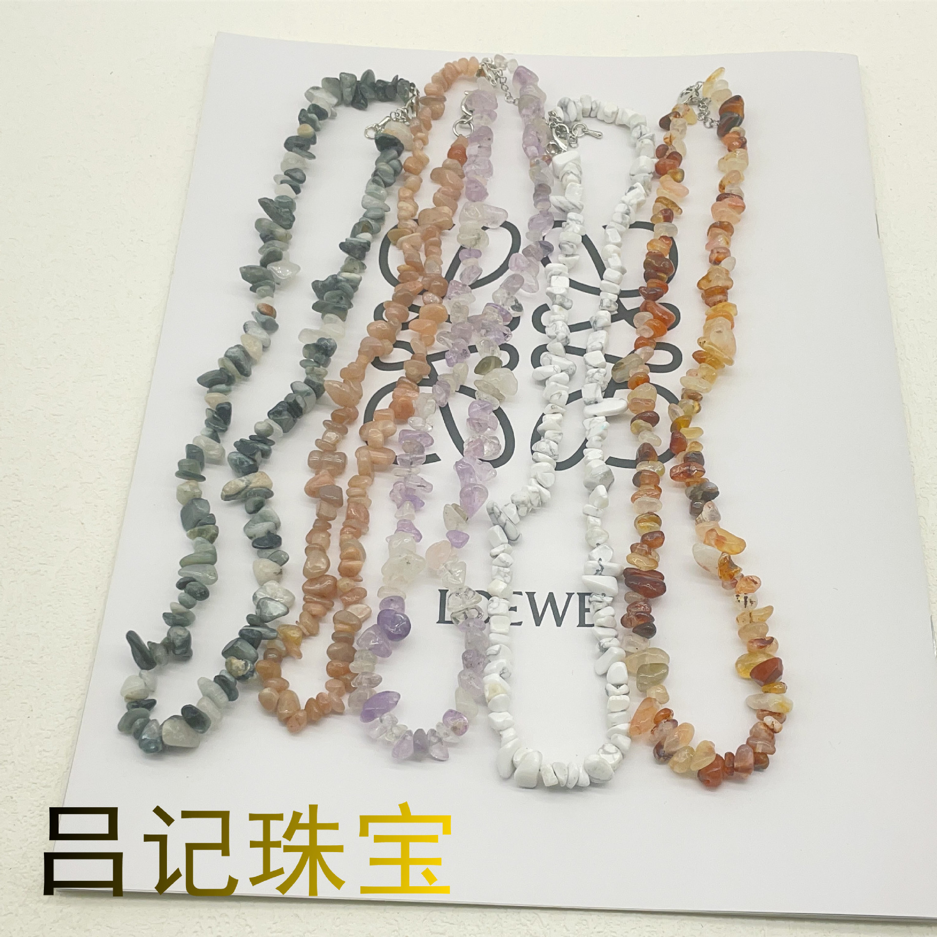 AliExpress Hot Sale European and American Summer Holiday Natural Crystal Irregular Gravel Necklace Bracelet suit Beaded