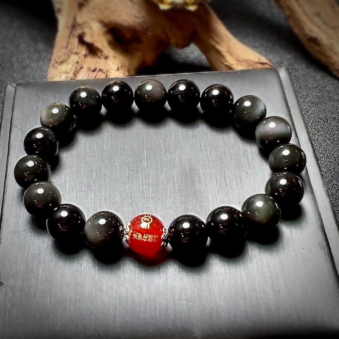 2023 Natural Obsidian Tai Sui Amulet Bracelet Safety Amulet Directly from Manufacturer Beaded Jade Buddha Beads