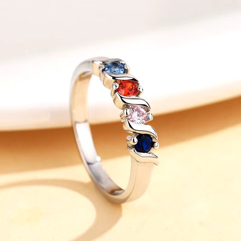 Cross-border European and American Ins Niche Colorful Zircon Geometric Single Row Ring Women's Micro-inlaid Cold Style Simple Hand Jewelry