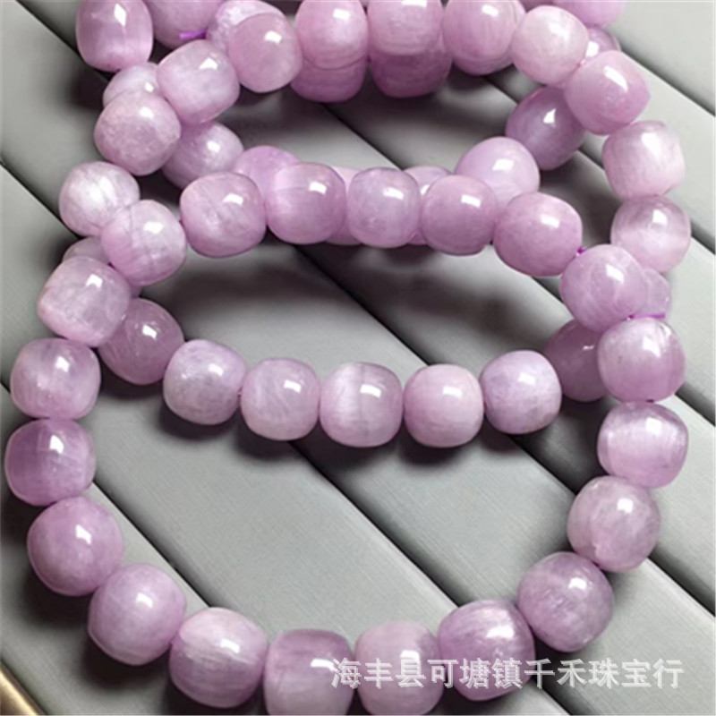 Qianhe factory wholesale natural purple lithium light old beads bracelet clear texture cat eye beautiful single ring purple lithium light bracelet