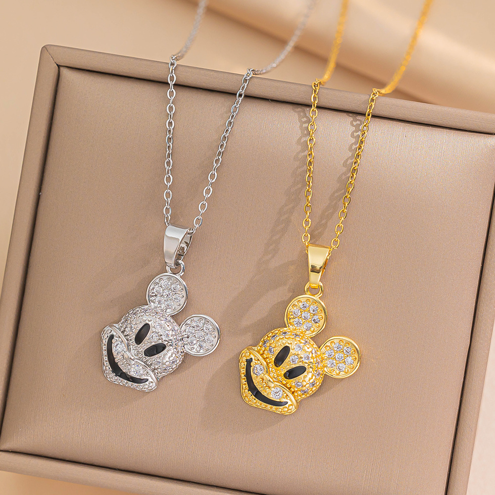 Necklace Women's Japanese-Korean Style Fashionable Simple Zircon Mouse Necklace Internet Red Style Clear Temperament Titanium Steel Clavicle Chain