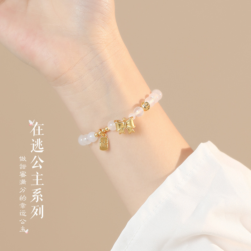 [Princess at large] natural white agate crystal bracelet female clear sweet bow hollow ball beaded bracelet