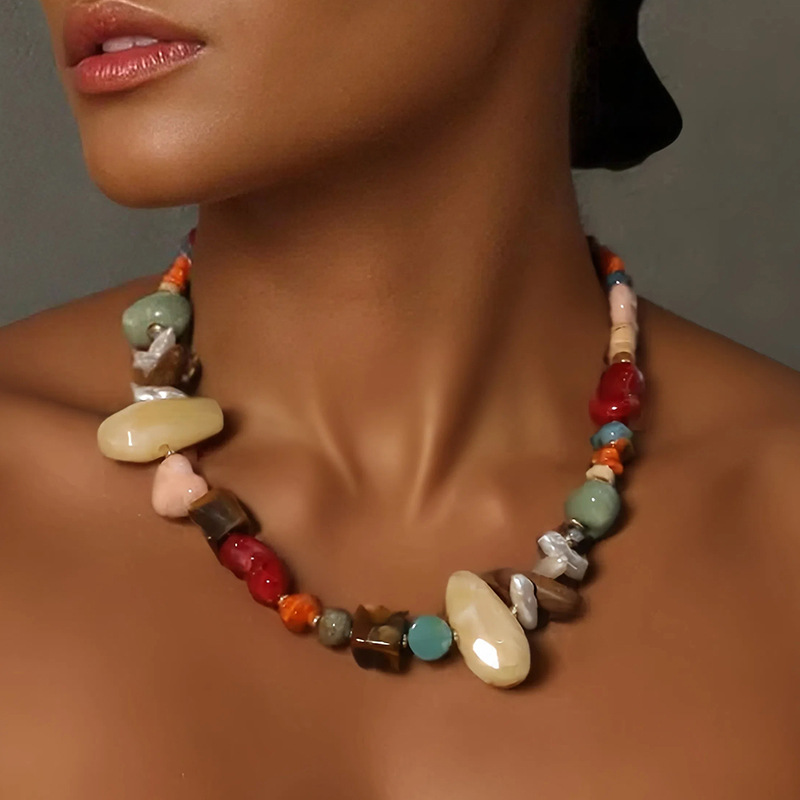 Cross-Border Original New Handmade Beaded Colorful Simulated Stone Necklace Dopamine Fashion Clavicle Chain for Women Wholesale