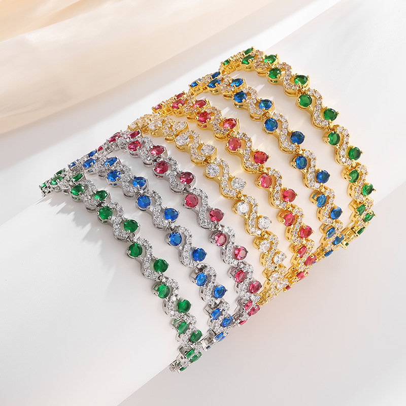 Cross-Border Environmentally Friendly Alloy Cross-Colorful White Stone Bracelets, Fashionable Light Luxury Temperament Women's Gemstone Crystal Bracelets Wholesale