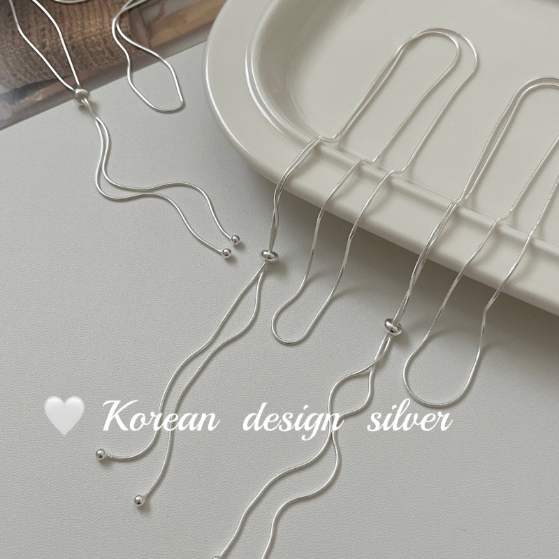Korean Dongdaemun Internet-Famous Stall Silver Jewelry S925 Sterling Silver Adjustable Sweater Necklace Niche Cool Style